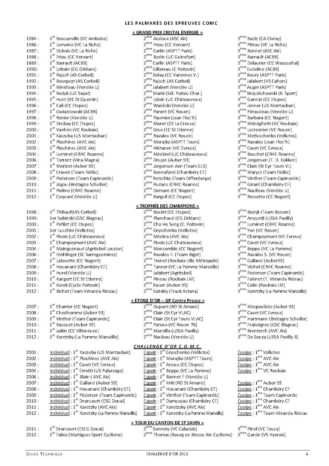 - Nous avons le plaisir de vous informer qu’un blog a été créé pour les épreuves du Challenge d’Or et réalisé par nos amis Géraldine et Ludovic. Vous retrouverez des présentations, articles de presse avec photos Alors, n’hésitez pas à visiter nos pages et commenter les articles. comc-challengedor2014.blogspot.fr/ comc-challengedor2013.blogspot.fr/ comc-challengedor2012.blogspot.fr/ A bientôt sur nos épreuves ! Denis CLEMENT Président du COMC