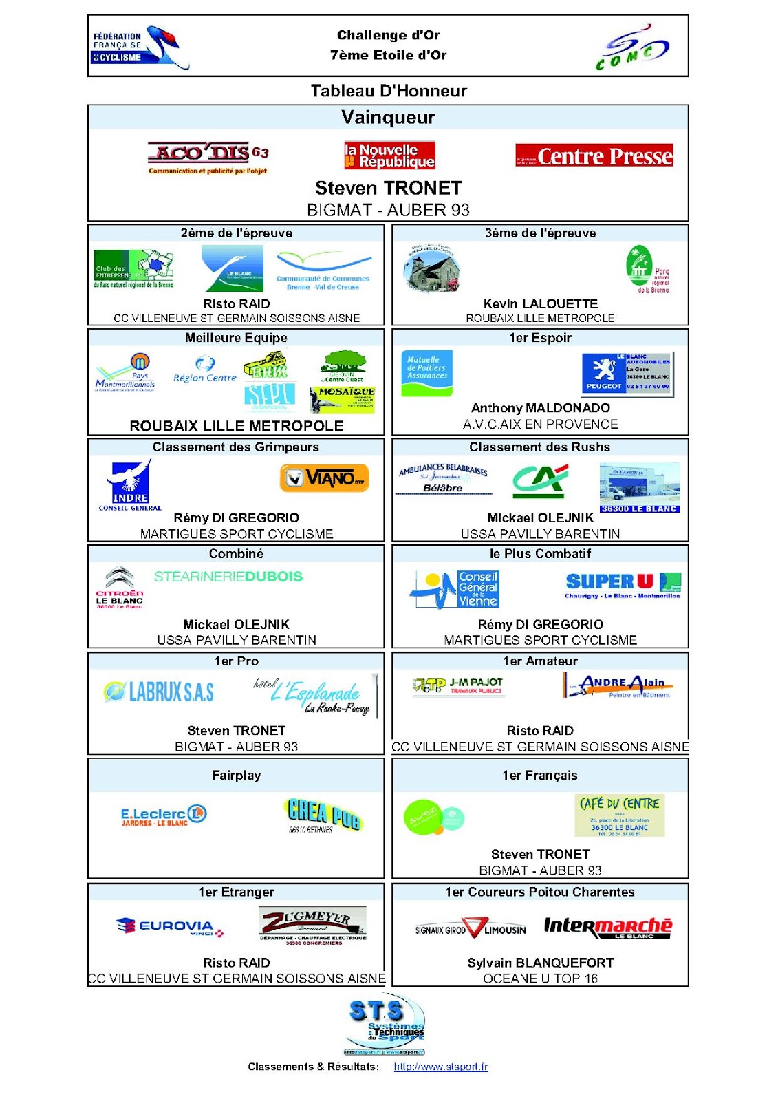 - Nous avons le plaisir de vous informer qu’un blog a été créé pour les épreuves du Challenge d’Or et réalisé par nos amis Géraldine et Ludovic. Vous retrouverez des présentations, articles de presse avec photos Alors, n’hésitez pas à visiter nos pages et commenter les articles. comc-challengedor2014.blogspot.fr/ comc-challengedor2013.blogspot.fr/ comc-challengedor2012.blogspot.fr/ A bientôt sur nos épreuves ! Denis CLEMENT Président du COMC