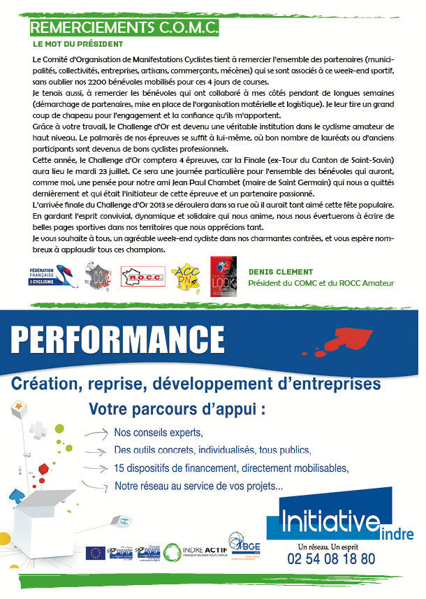 - Nous avons le plaisir de vous informer qu’un blog a été créé pour les épreuves du Challenge d’Or et réalisé par nos amis Géraldine et Ludovic. Vous retrouverez des présentations, articles de presse avec photos Alors, n’hésitez pas à visiter nos pages et commenter les articles. comc-challengedor2014.blogspot.fr/ comc-challengedor2013.blogspot.fr/ comc-challengedor2012.blogspot.fr/ A bientôt sur nos épreuves ! Denis CLEMENT Président du COMC